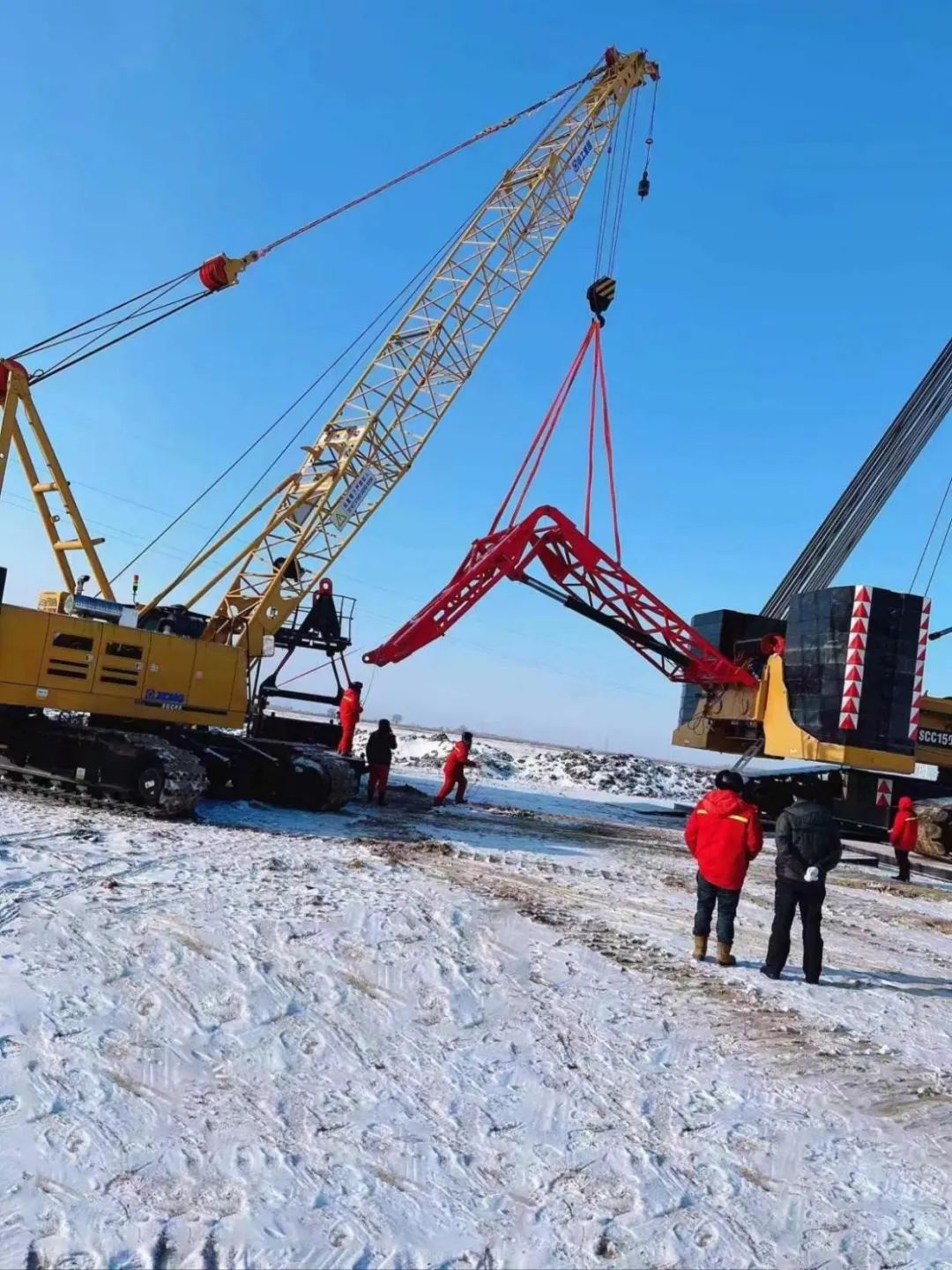 根據施工安排,當前正在緊鑼密鼓地進行塔吊組裝工作,加快風機吊裝速度。為應對此次低溫降雪天氣,安全優質高效地完成施工任務,項目部提前謀劃、主動出擊,為作業人員配備防寒保暖勞保用品,并根據天氣狀況合理調整施工計劃;組織員工開展施工安全教育,堅決落實施工安全措施,確保惡劣天氣條件下安全防護不松懈、不打折扣,有效保障了施工現場各項工作的有序進行,為集團提質增效貢獻力量。