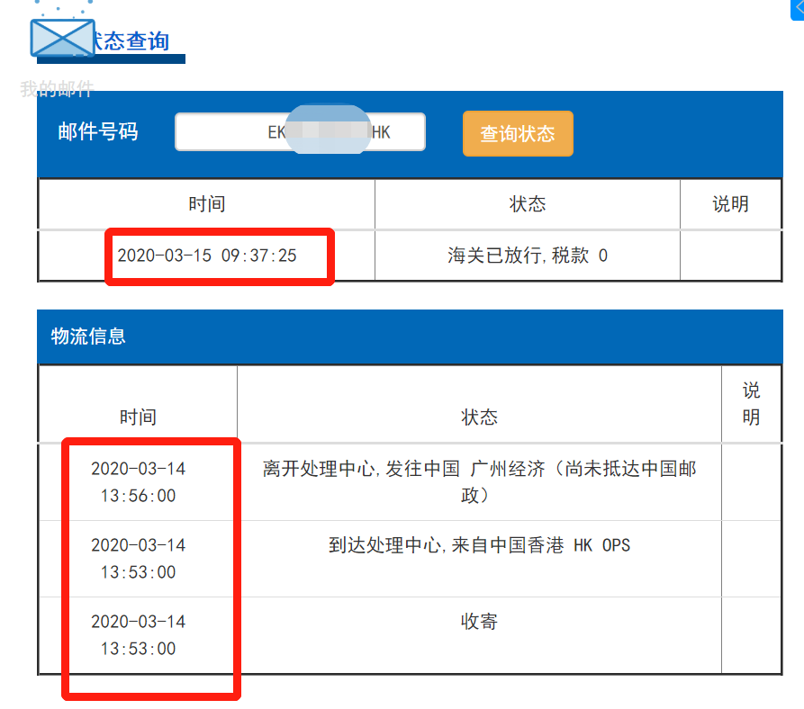 上面兩個(gè)圖片,大家可以看到EK開(kāi)頭,MO和HK結(jié)尾。EK代表DDP模式的單號(hào),MO代表始發(fā)地是澳門,HK代表始發(fā)地是香港。