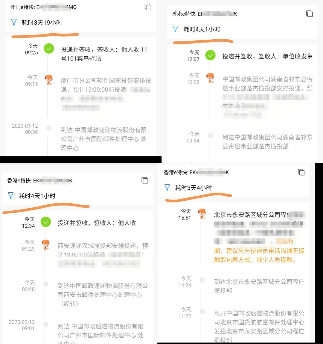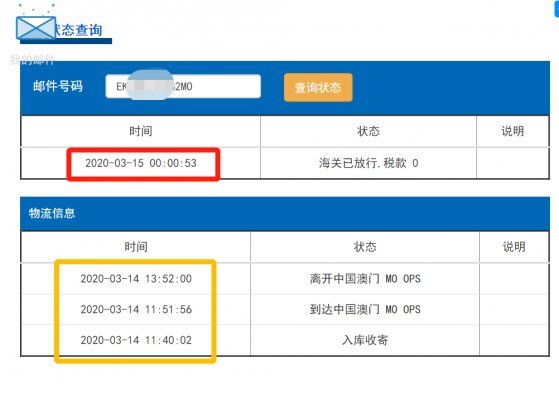 上圖所示,似乎澳門清關(guān)速度更勝一籌,快了近9個(gè)小時(shí),澳門e特快因?yàn)檎w貨量沒(méi)有香港e特快的量大,所以澳門處理中心幾乎不會(huì)出現(xiàn)積壓的現(xiàn)象,澳門每天清關(guān)的貨量也比香港的少,所以清關(guān)的速度也相對(duì)比香港e特快更快一些。